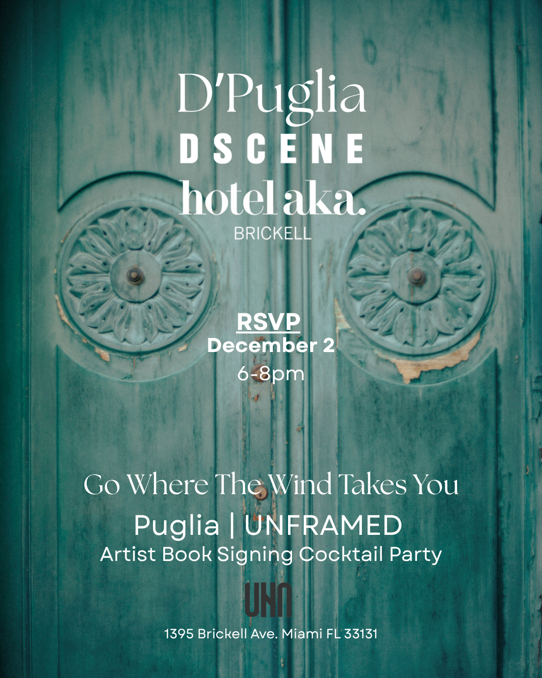 each an elemental force capturing the spirit of Puglia through design, color, memory, and motion.Sip thoughtfully crafted cocktails by UNA Vodka as you connect with the artists, discover their process, and immerse yourself in the stories woven into the pages of the Go Where The Wind Takes You: Puglia | UNFRAMED artist guidebook.